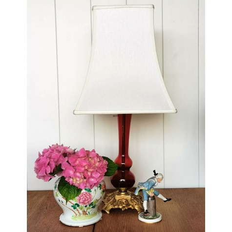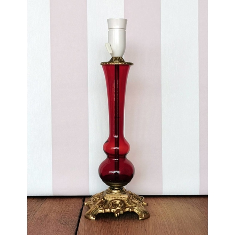 Antike Tischlampe aus rotem Glas mit Messingfuß.