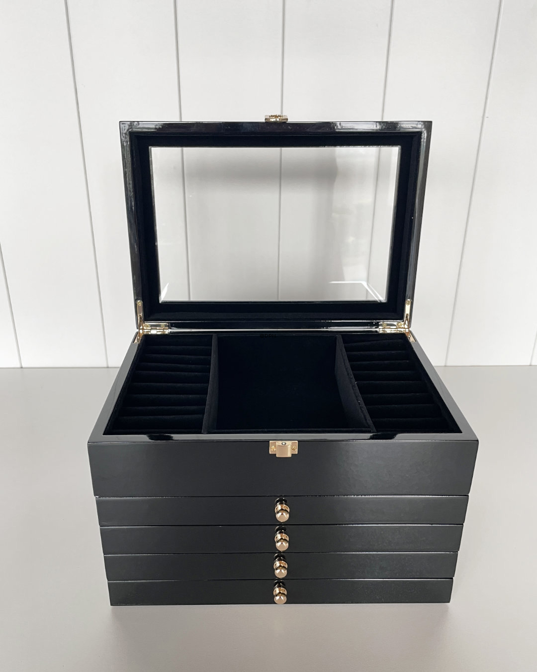 Schmuckkästchen in Schwarz mit Velours - stilvolle Aufbewahrung für Ihre gesamte Sammlung