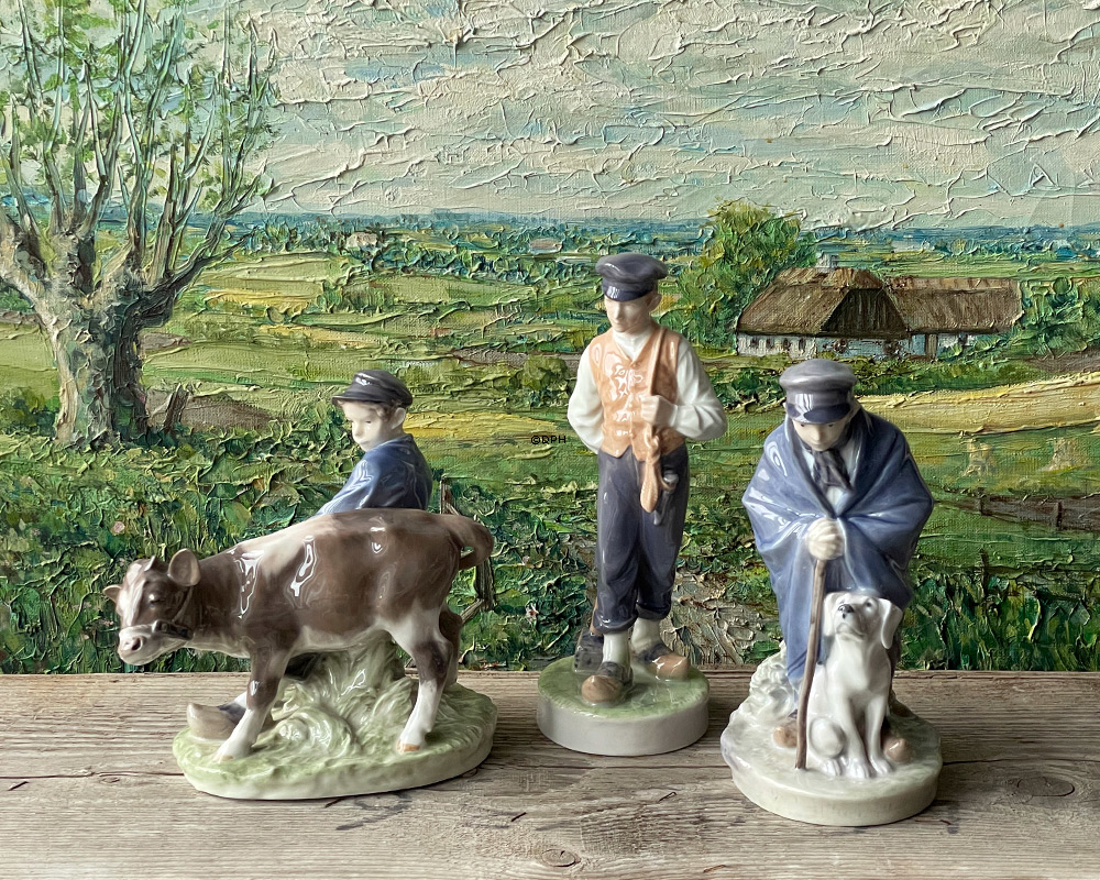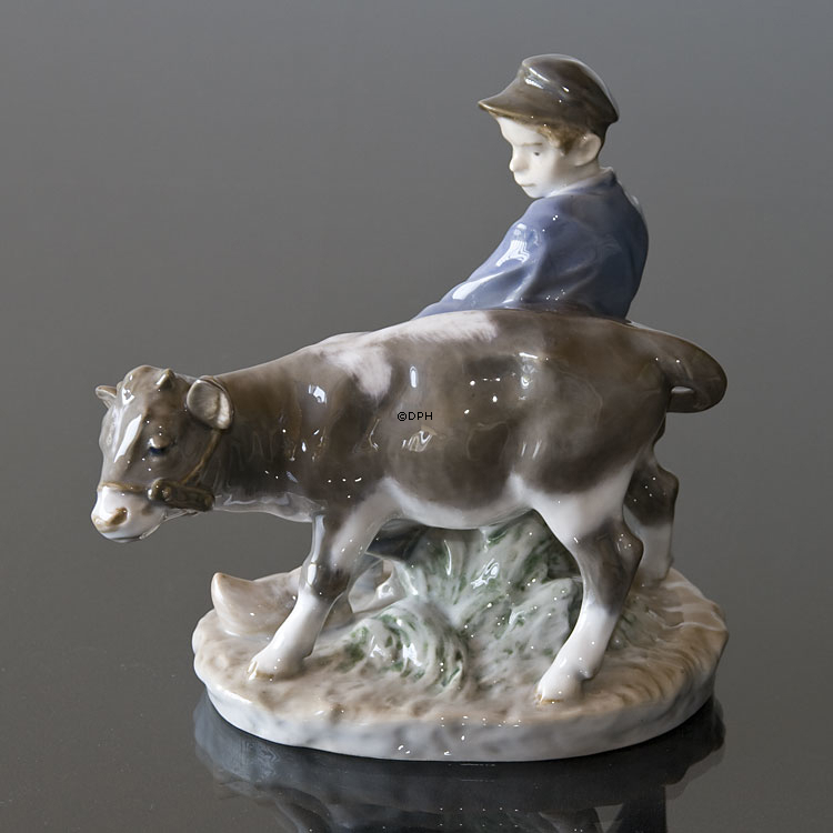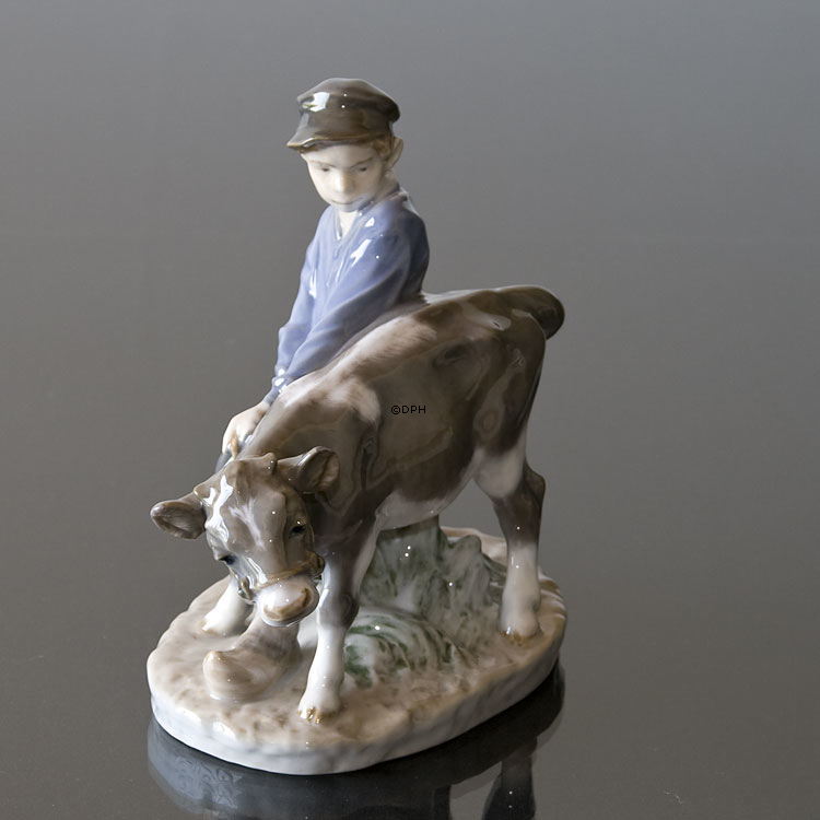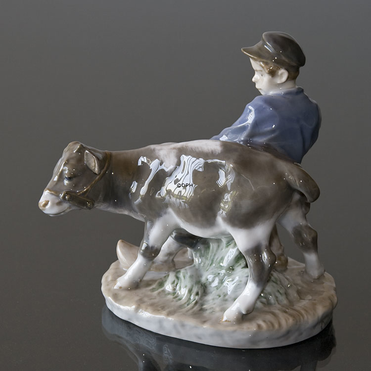 Junge, der zum Feld mit Kalb geht, Royal Copenhagen Figur-Nr. 772 oder 074