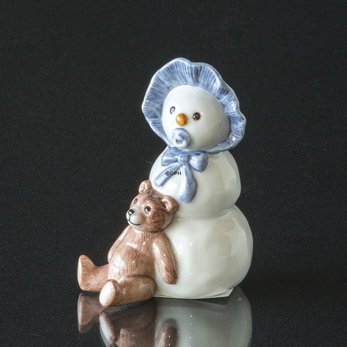 Schneemann Junge mit Teddy, Royal Copenhagen Winter Figur Nr. 019