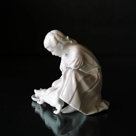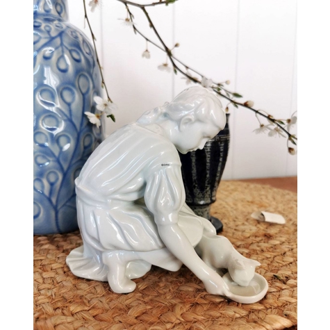 Nur ein Tropfen, Mädchen mit Katze, Royal Copenhagen Figur Nr. 421
