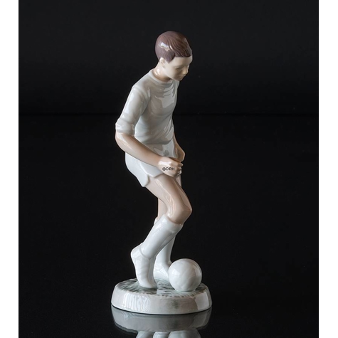 Fußballspieler in Weiß, Junge spielt Ball, Bing & Gröndahl Figur Nr. 2375