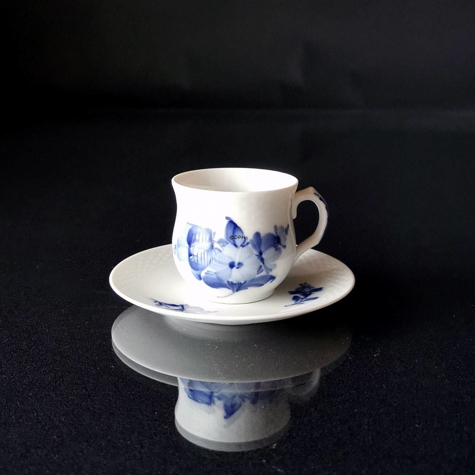 Blaue Blume, glatt Produziert seit 1779 bei Royal Copenhagen. Kopiert von der deutschen Fabrik Meißen, aber auch aus China. Allmählich, als neues Geschirr geschaffen wurde, wurde die Dekoration für das glatte, geschweifte und eckige Geschirr gemacht.