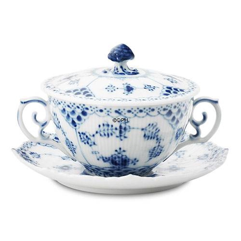 Musselmalet Vollspitze, Suppentasse mit Deckel Nr. 1/1228 oder 106, Inhalt 35 cl., Royal Copenhagen