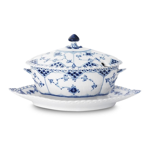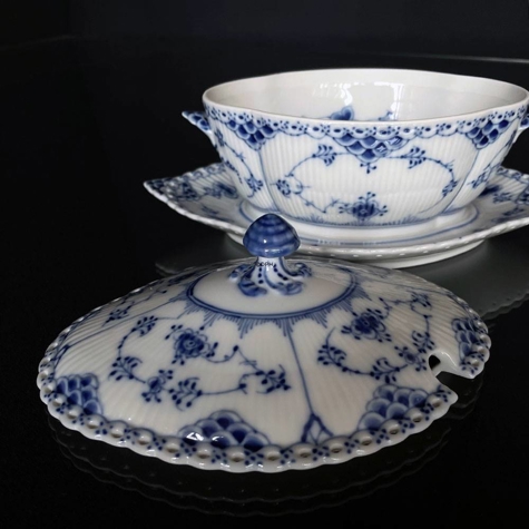 Musselmalet Vollspitze, Sauciere mit Deckel auf festen Stand, Inhalt 40 cl., Royal Copenhagen