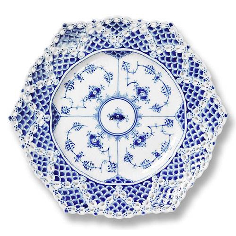 Musselmalet Vollspitze, Teller mit doppelter Spitzenbordüre, Royal Copenhagen 21cm