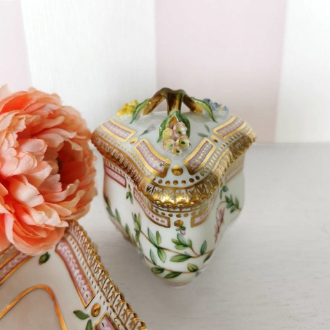 Die Geschichte von Flora Danica beginnt am Ende des 18. Jahrhunderts. In dieser Zeit wurde Porzellan als "das weiße Gold" bezeichnet. Der Name Flora Danica stammt aus dem umfassenden botanischen Meisterwerk Flora Danica, das 1761-1883 veröffentlicht wurde und in dem ein großer Teil der dänischen Flora auf Kupferplatten abgebildet ist. Alle Details werden von Hand modelliert und geschnitzt, alle Teile sind in der Farbe handbemalt und an den Kanten mit 22 Karat Gold überzogen. Jedes Stück eines Sets ist selbst ein Kunstwerk und Flora Danica ist einer der feinsten und exklusivsten Geschirre der Welt. König Christian VII bestellte Flora Danica, wahrscheinlich als Geschenk für Kaiserin Katharina II von Russland. Die Kaiserin starb jedoch vor dem Abschluss des Geschirres und blieb somit im Besitz der dänischen Königsfamilie und kann im Schloss Rosenborg und im Palast von Christian VII in Kopenhagen besichtigt werden. Flora Danica ist ein erhabener Vertreter des dänischen Kunsthandwerks und wird heute genau so produziert wie vor mehr als 200 Jahren.