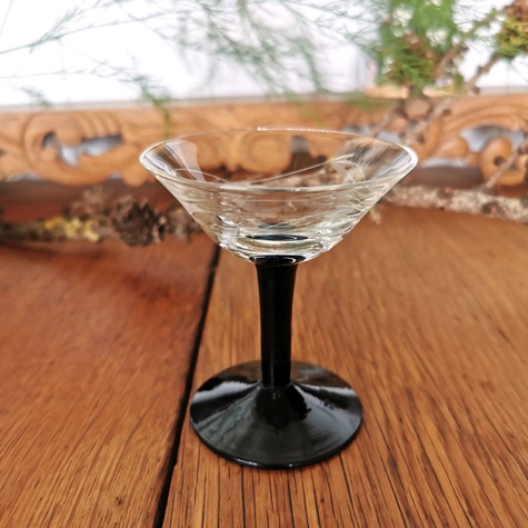 Holmegaard ranke hat eine Rebe ins Glas geschnitten und einen schwarzen Fuß.