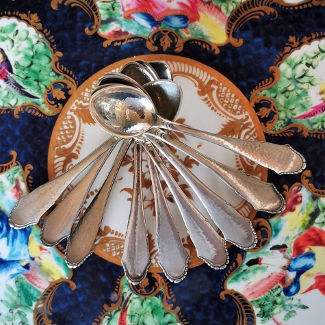 Christiansborg Silber, Set bestehend aus 9 Kaffeelöffeln / Teelöffeln. Mit dezenter Dekoration.