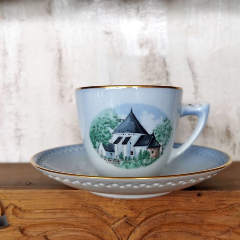 Dänemark Geschirr Tasse (Østerlars Kirche), Bing & Gröndahl (Tasse Ø 7,5 cm - Untertasse Ø 14 cm)