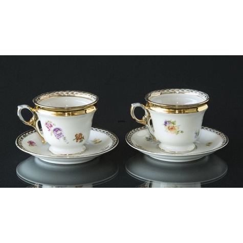 Altwasser Silesia Set von Zwei Blumenverzierten Tassen mit Vergoldung