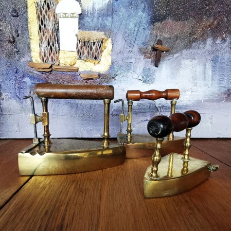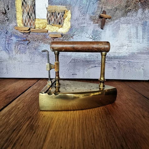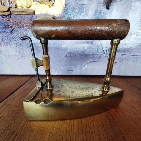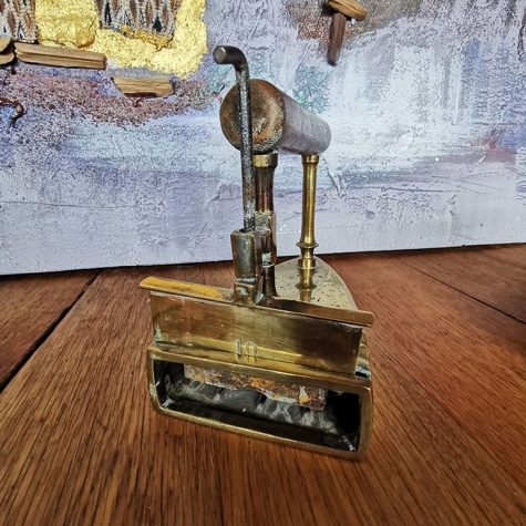 Messing Bügeleisen mit Öffnung auf der Rückseite mit intaktem Heizstein (10)