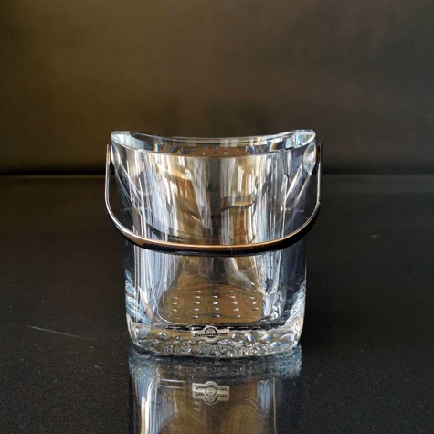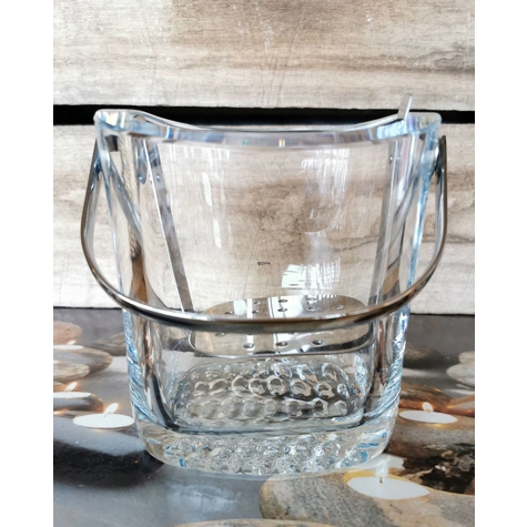 Schöner Eiskübel aus Glas von Strömbergshyttan in Schweden. Der Eiskübel hat einen praktischen Einsatz, damit das Wasser ablaufen kann, wenn das Eis schmilzt.