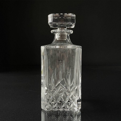 Karafe in Glas mit Schliffen am Stopfen und am Fuß