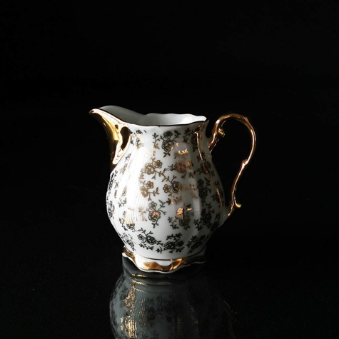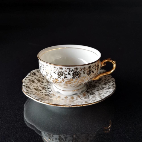 Espressotassen mit Untertassen mit Zuckerdose und Sahnekännchen