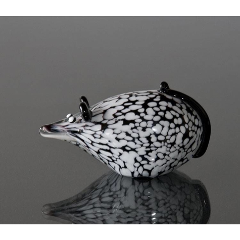 Liegende Glasmaus, Schwarz und Weiß gefleckt, mundgeblasene Glaskunst