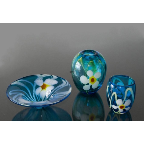 Diese Serie besteht u.a. aus den sehr beliebten Glasfischen, Glasvögeln, Glasvasen und Glasschalen. Jedes Stück ist ein Kunstwerk, jedes Stück sieht anders aus.