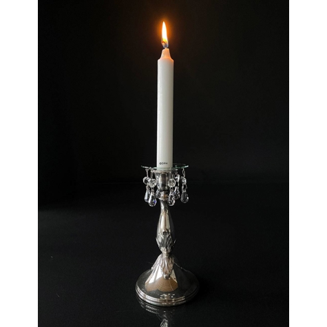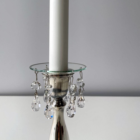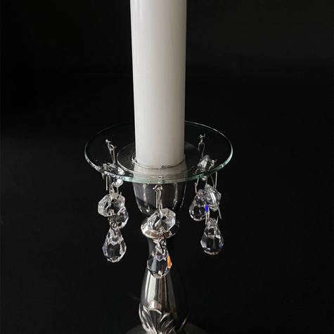 Kerzenring mit Gerade Kante mit Silberrand und kleinen Kristalltropfen.
