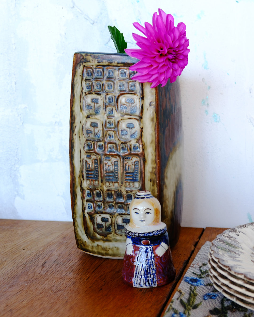 Aluminia Senftopf / Senfkrug mit abnehmbarem Deckel. Die figur ist auch "Senffrau" genannt, entworfen von Doreen Middelboe.