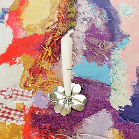 Vierblättriger Klee Kerzenständer aus versilbertem Metall.