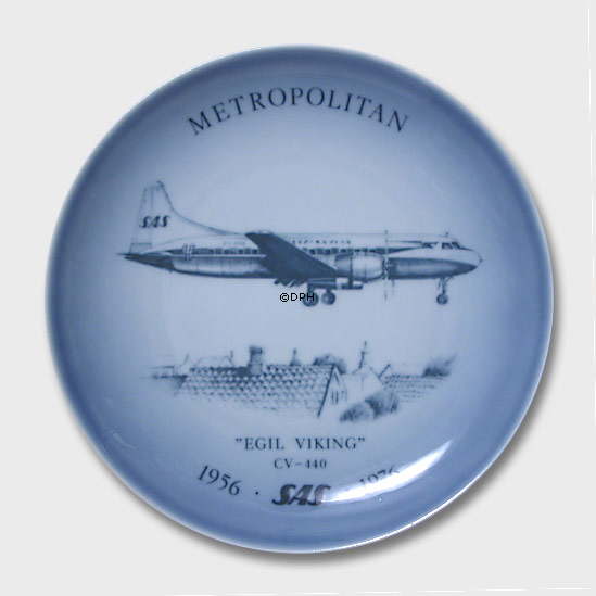 Bing&Gröndahl Luftfahrtteller Nr. 3 Der erste Flug Convair CV-440 Metropolitan war am 8. Januar 1956. Rund 1000 Convair-Liner wurden hergestellt. Die Convair Liner-Serie ist bei den meisten Fluggesellschaften der westlichen Welt im Einsatz und hat auch mit vielen Luftstreitkräften gedient. SAS hatte insgesamt 20 Convair CV-440 Metropolitan in seiner Flotte. Der Metropolitan wurde bis 1976 genutzt.