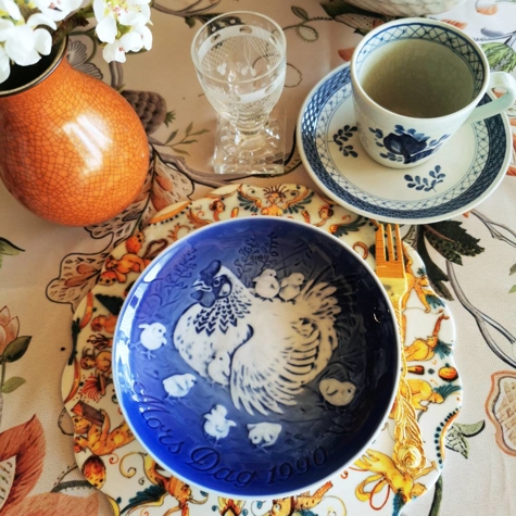 1990 Bing&Gröndahl Muttertagsteller mit dem Titel Henne mit Huhn wurde von Leif Ragn Jensen entworfen. Das Motiv des Bing&Gröndahl Muttertagstellers von 1990 zeigt eine Henne mit ihrem Küken. Die ersten paar Wochen nach der Geburt brauchen die Küken Wärme von ihrer Mutter. Wenn die Henne dem Küken Essen zu finden lehrnen will, dann gackert und sticht sie in den Boden. Die Bing&Gröndahl Muttertagsteller erschienen 1969 und werden jedes Jahr mit einem neuen Muttertagsteller weitergeführt.