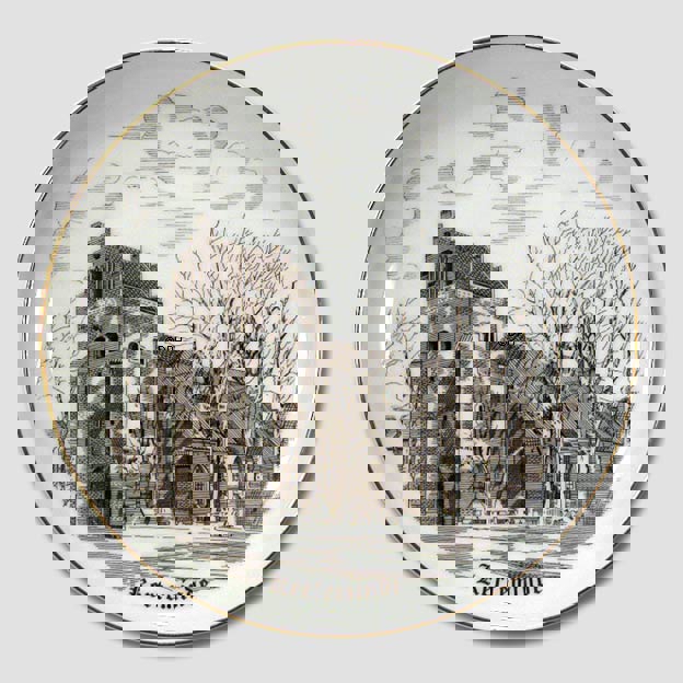 Bing&Gröndahl Teller mit brauner Zeichnung Motiv: Kerteminde Kirche