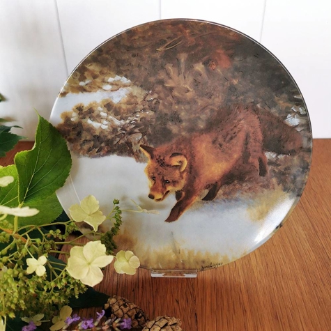 Guldkroken Teller no. 3 in der Serie "Füchse in einer Winterlandschaft", Schleichender Fuchs