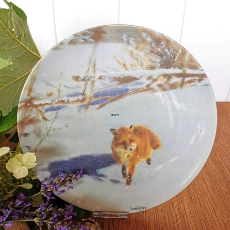 Guldkroken Teller no. 6 in der Serie "Füchse in einer Winterlandschaft", Fuchs im Schnee