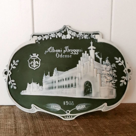Biskuit-Platte/Relief, hergestellt aus Wedgwood Jasperware, einem unglasierten Porzellan, das auch als Biskuit bezeichnet wird, grün mit weißem Motiv.