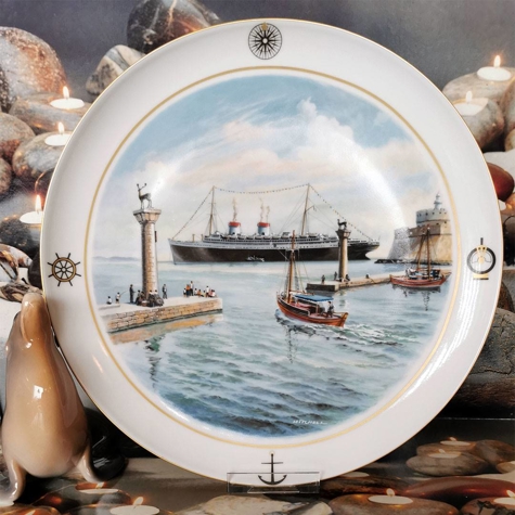 Teller mit einem Passagierschiff aus der Serie The Atlantic Liners Plate Series, entworfen von James E. Mitchell.