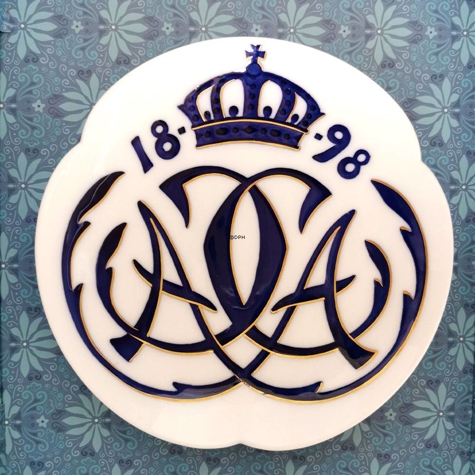 Royal Copenhagen Gedenkteller Ausgabejahr: 1898 2500 Exemplare Entwurf: Arnold Krog Durchmesser: 6 3/4 " Motiv: Die Hochzeit von Prinz Christian (später König Christian X) mit Prinzessin Alexandrine von Mecklenburg. Der Rand in drei Kurven geformt. Krone und das Jahr 1898 unter dem Monogramm CA.