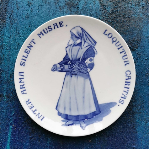 1917 Royal Copenhagen Gedenkteller, Teller des Roten Kreuzes, INTER ARMA SILENT MUSAE LOQUITUR CARITAS