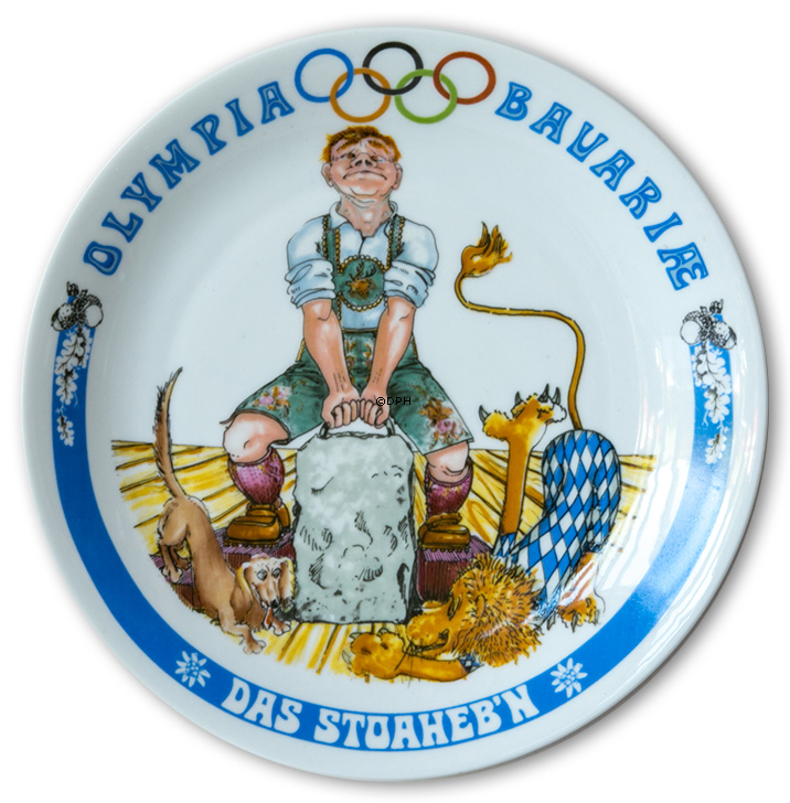 Olympia Bavariae - ein humorvoller Beitrag zu den 20. Olympischen Spielen in München 1972. Die Serie umfaßt 9 bayrische Disziplinen auf großen und kleinen Tellern.