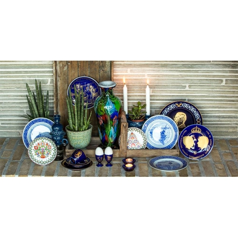 Steinböck Muttertagsteller in emailliertem Metal mit stillisierten Blumen.