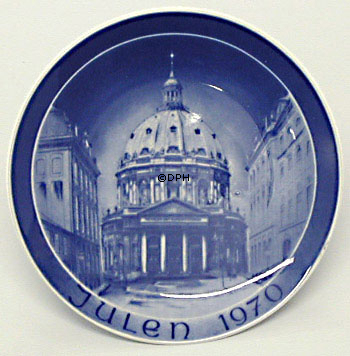 1970 Weihnachtsteller mit der dänischen Marmorkirche. Diese Serie von Weihnachtstellern mit dänischen Kirchen begann 1968 und endete 1990. Die für die Teller verwendete Technik ist Unterglasur.