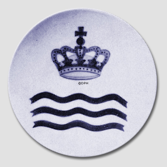 Royal Copenhagen Gedenkteller Ausgabejahr: 1888 1200 Exemplare hergestellt Technik: Unterglasur Entwurf: Arnold Krog Durchmesser: 6 3/4 " Motiv: Die skandinavische Ausstellung in Kopenhagen für Industrie, Landwirtschaft und Kunst. Krone über drei Wellenlinien. Entworfen von Arnold Krog.
