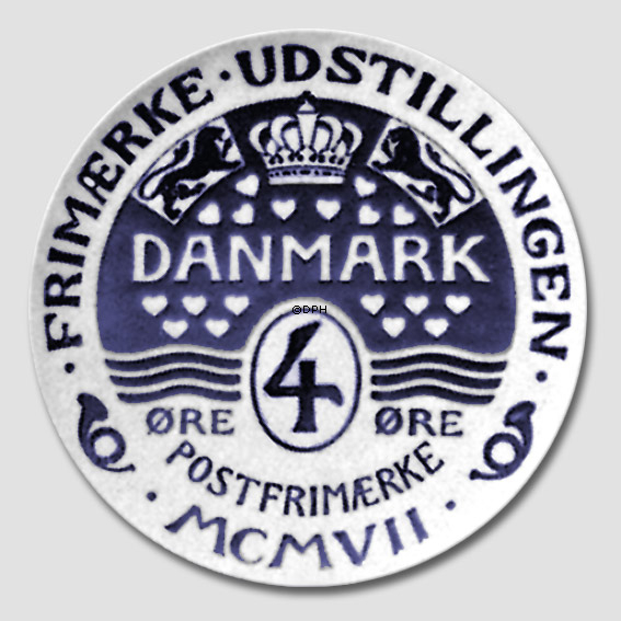 1907 Royal Copenhagen Gedenkteller, FRIMÆRKE UDSTILLING MCMVII.