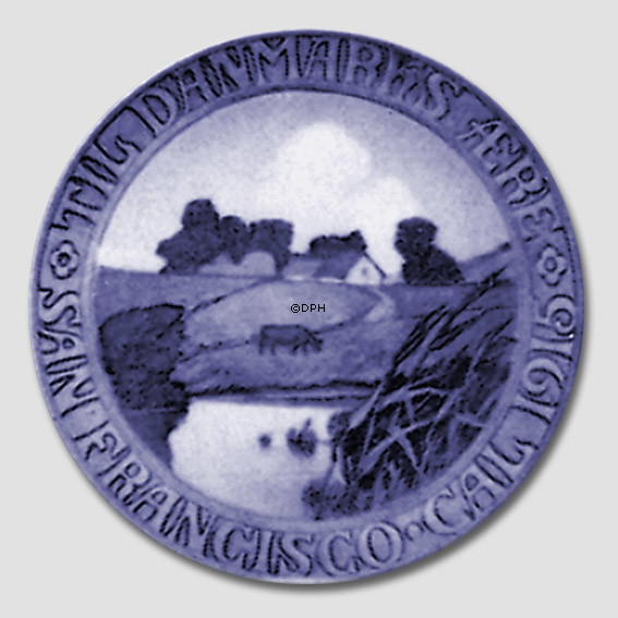 1913 Royal Copenhagen Gedenkteller, San Francisco Teller, TIL DANMARKS ÆRE SAN FRANCISCO CAL. 1915