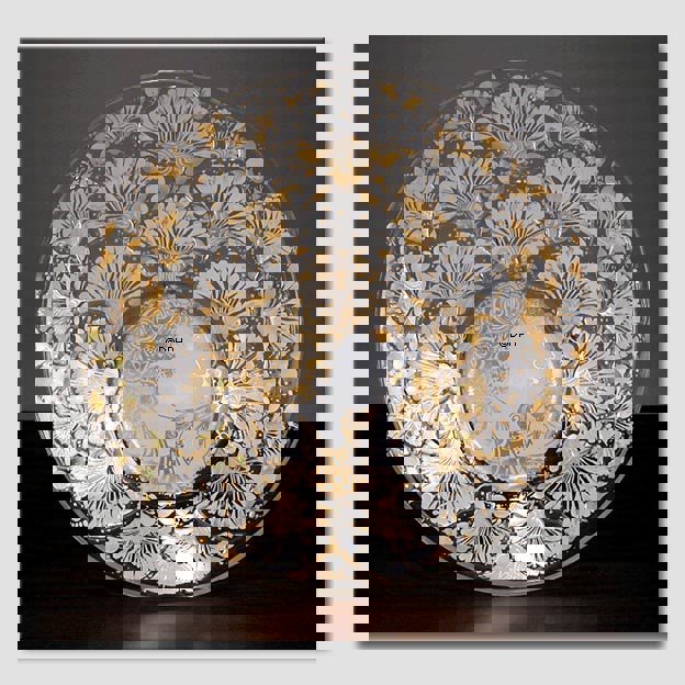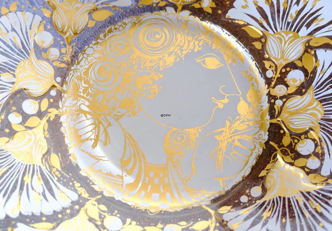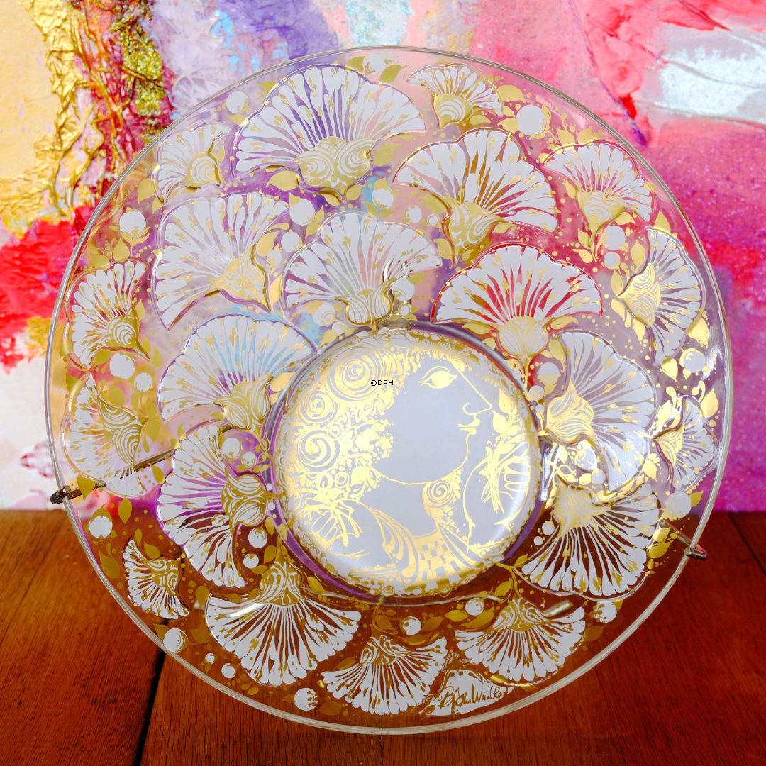 Rosenthal jährlicher Künstlerteller in Glas 1976 Künstler: Björn Wiinblad Ausgabejahr: 1976 Technik: Glaskunst Motiv: Wiinblad Dame in Profil umgeben von Blumen.