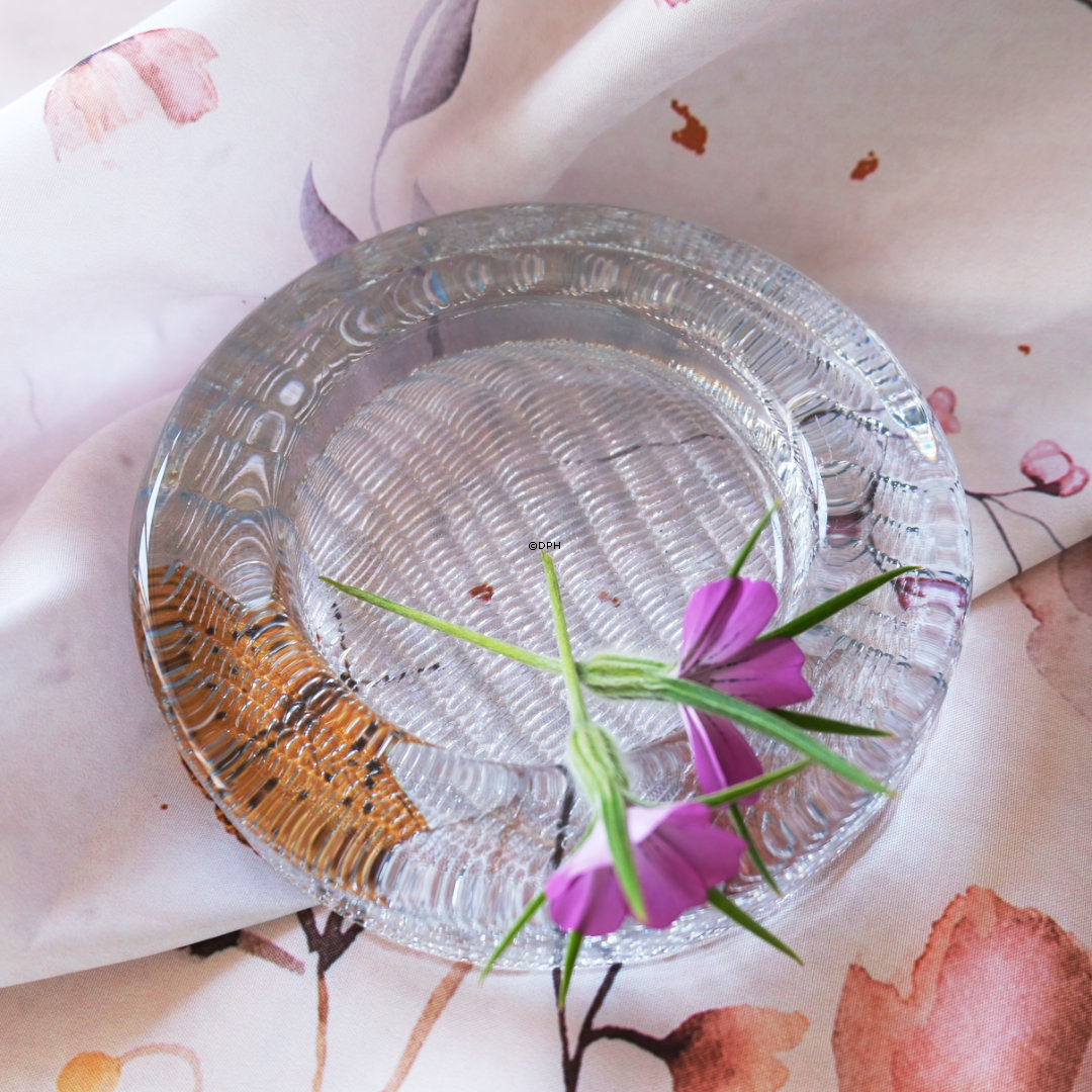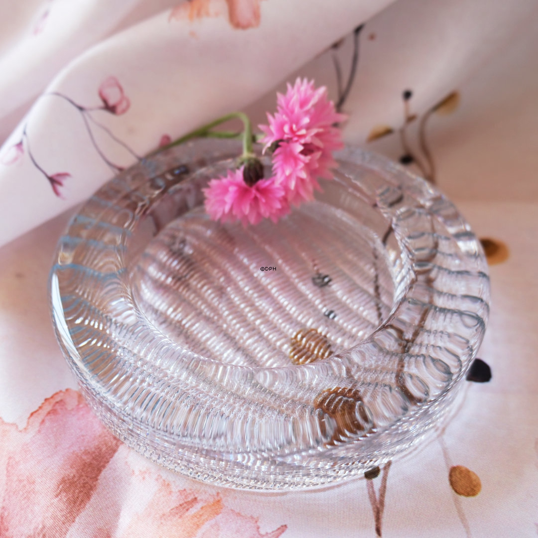 Schale aus massivem Glas mit gerilltem Muster am Boden, das einen schönen Effekt erzeugt. Entworfen von Torben Jørgensen