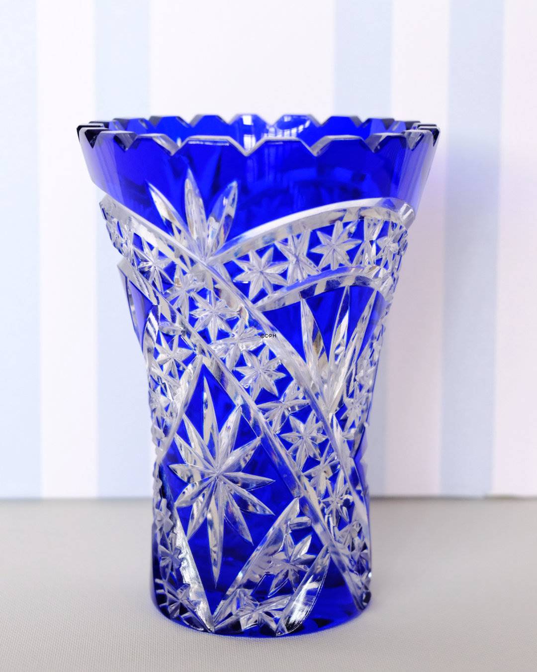 Kristallglasvase mit Schliffen und blaufarbenem Glas.