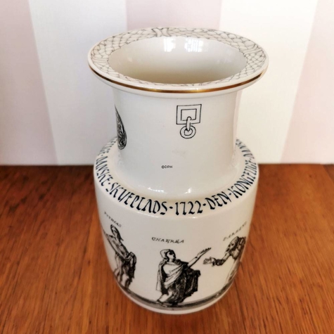 Bing&Gröndahl Porzellanvase mit Szenen aus Komödien vom klassischen Dramatiker Terents Alte Nr .: 1857-5750 Motiv Nr .: 1857 Vase Form Nr .: 5750 Technik: Unterglasur Grundfarbe: Weiß Höhe: 7 "- 18 cm