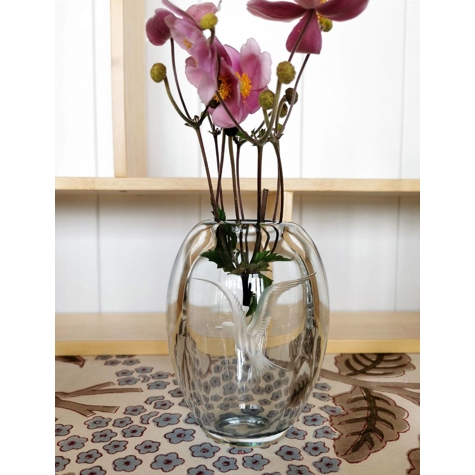 Glass Vase mit Gravuren von Vogel