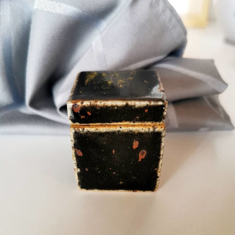 zufälli ge Flecken in der Glasur erscheinen. Diese Flecken verleihen eine raffinierte, natürliche Textur und machen jede Dose einzigartig.