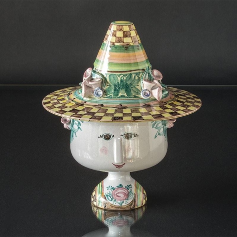 Wiinblad Vase mit Hut handbemalt, mehrfarbig