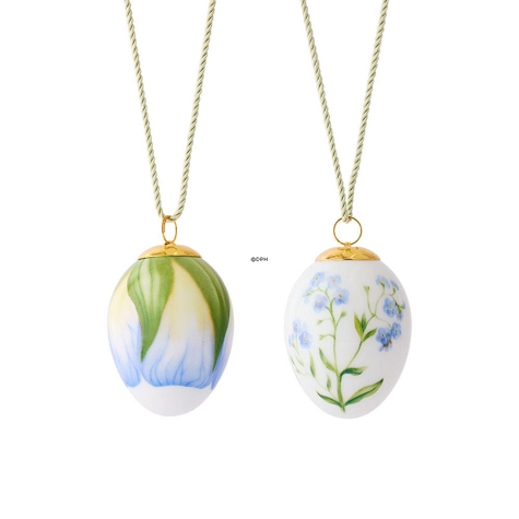 Osterei mit Vergissmeinnicht und Vergissmeinnicht Blätter, 2 Stück, Royal Copenhagen Oster 2025