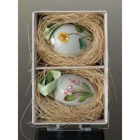 Ostereier mit Blumen, Huflattich und Holzhyazinthe, 2 Stück, Royal Copenhagen Osterei 2014